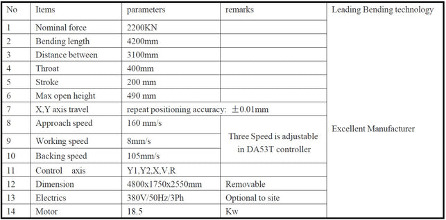 Bending Length: 4200 mm (165.35”)